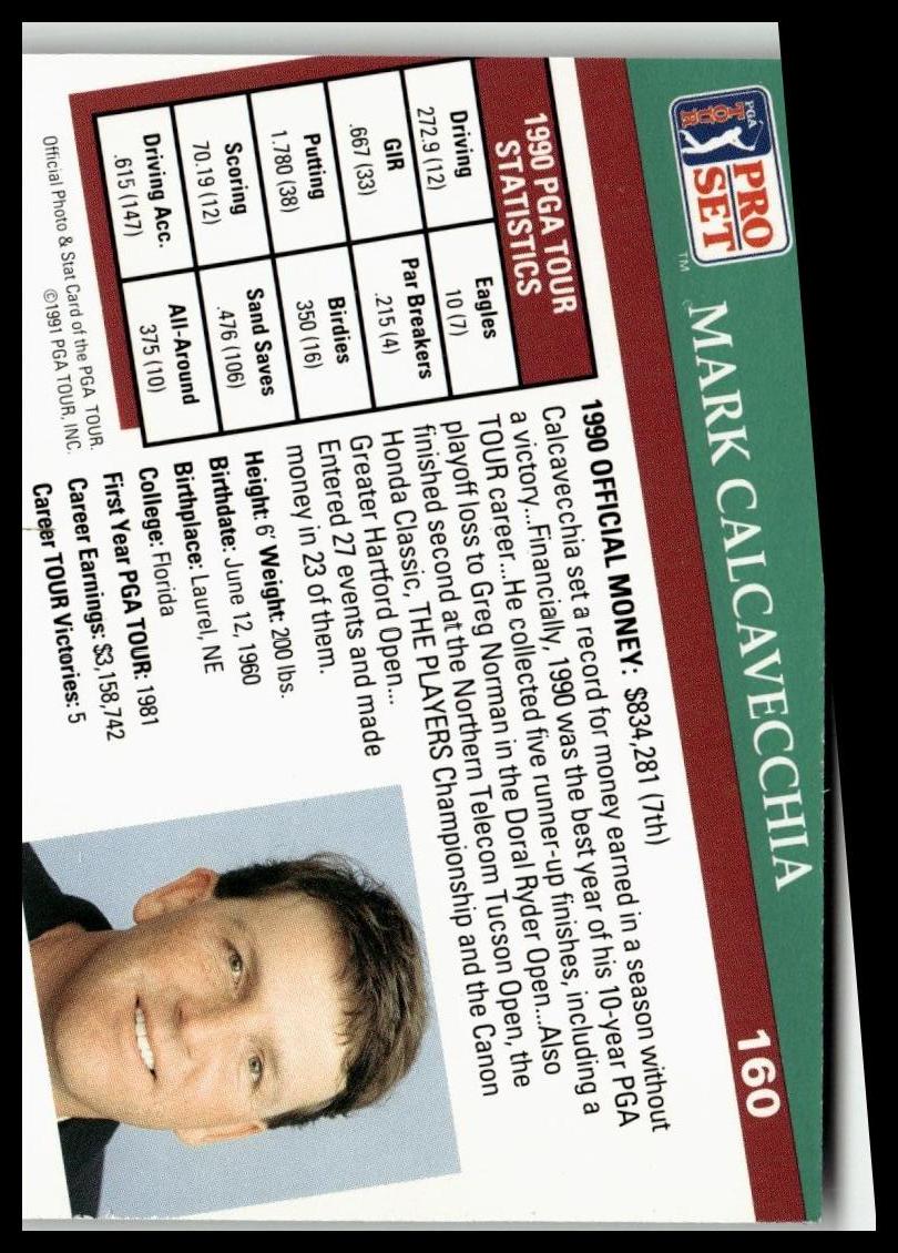 Golf Singles 1991 Pro Set PGA Tour [160 Mark Calcavecchia is backordered and will ship as soon as it is back in stock.