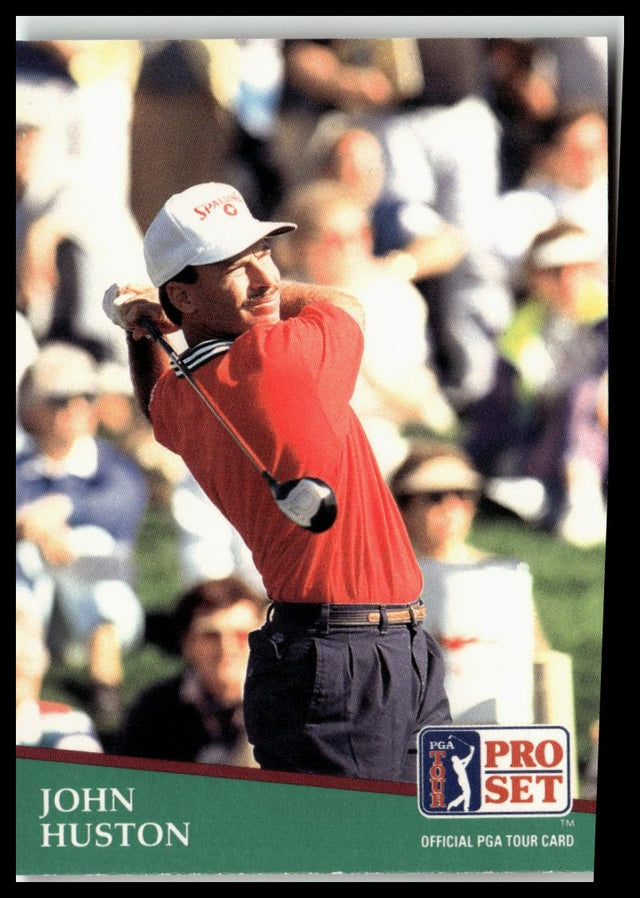 Golf Singles 1991 Pro Set PGA Tour #19 features John Huston, capturing his performance and career highlights from the 1991 PGA Tour season. This card offers detailed professional insights, making it a valuable collectible for dedicated enthusiasts of vintage golf memorabilia. Its authenticity and condition enhance its appeal as a significant addition to expert collections and displays.