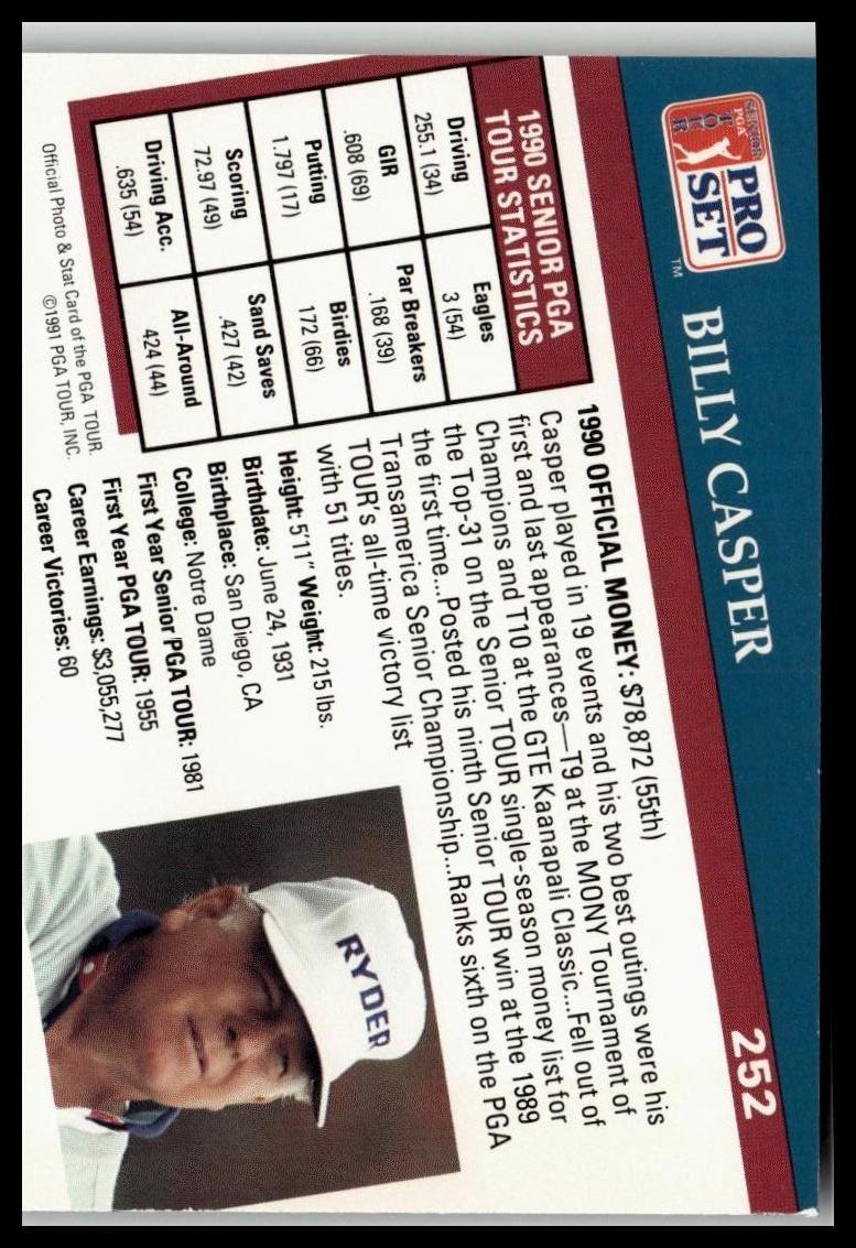 Golf Singles 1991 Pro Set PGA Tour [252 Billy Casper is backordered and will ship as soon as it is back in stock.