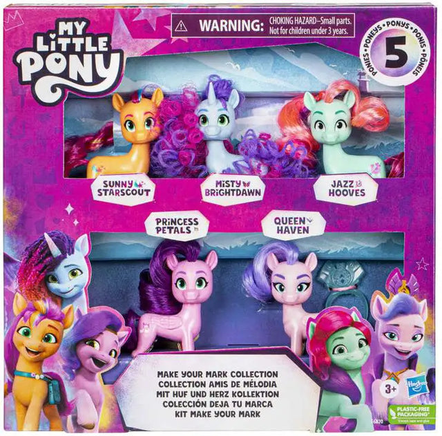 - MAKE YOUR MARK COLLECTION: Imagine a trip to Mane Melody or a trot through Maretime Bay with Queen Haven, Misty Brightdawn, Jazz Hooves, Princess Pipp Petals, and Sunny Starscout toys