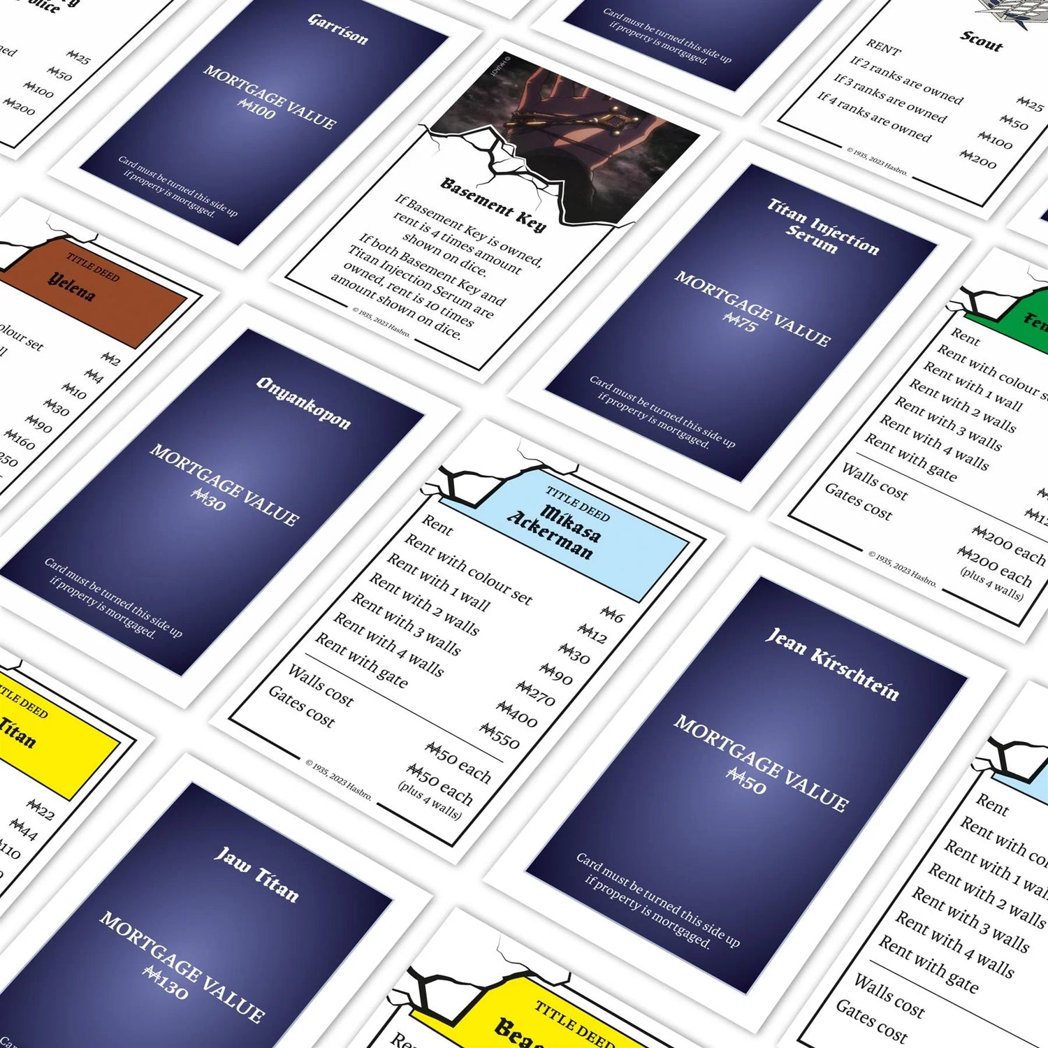 - PERFECT FOR ATTACK ON TITAN LOVERS: This new Attack on Titan edition of Hasbro's classic board game Monopoly is perfect for 2–6 players and makes a great gift for fans aged 8 and up