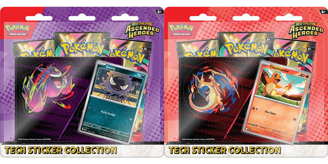 Pokémon from the Kanto region are ascending to greatness—as both promo cards and tech stickers! In this collection, you’ll find either Charmander or Gastly as a foil promo card, plus a sheet of tech stickers featuring Charmander and Mega Charizard Y or Gastly and Mega Gengar. Top it all off with even more Pokémon inside three booster packs from the mega-awesome Mega Evolution—Ascended Heroes expansion.