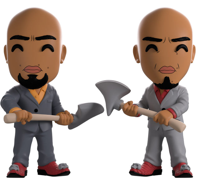 You better watch out the Salamanca Cousins are here and they aren't messing around. Inseparable and perfect for a double pack, the pair stand at 4.8 inches tall wearing matching grey suits and red reptile skin boots along with red or yellow shirt. With serious scowls crossing their faces and smooth bald heads, they each hold an axe in their hands, ready to swing.