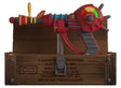 What perfect timing! Just the weapon you need to blast your way through the next wave! Pulled from the ether to levitate at 3 inches tall above a brown wooden Mystery Box that has grey metal bolts and hinges with a pair of questions marks on its lid, the iconic Ray Gun is a deep red with yellow detailing running down the barrel to the power gauge on its side as the top pulsates with a bright blue. But what other secrets does the Mystery Box hold? Bundle up and get both the Ray Gun and Ray PJ-SRU! It's time to track down the box’s next location and test your luck! The exterior of its packaging sees the Raygun shining in the light from Mystery Box as the silhouette of an ornate fence runs behind it. The interior is engulfed in black ‘redacted’ bars which work their way onto the protective sleeve where its figure can be seen through the large clear window at the packaging’s front.