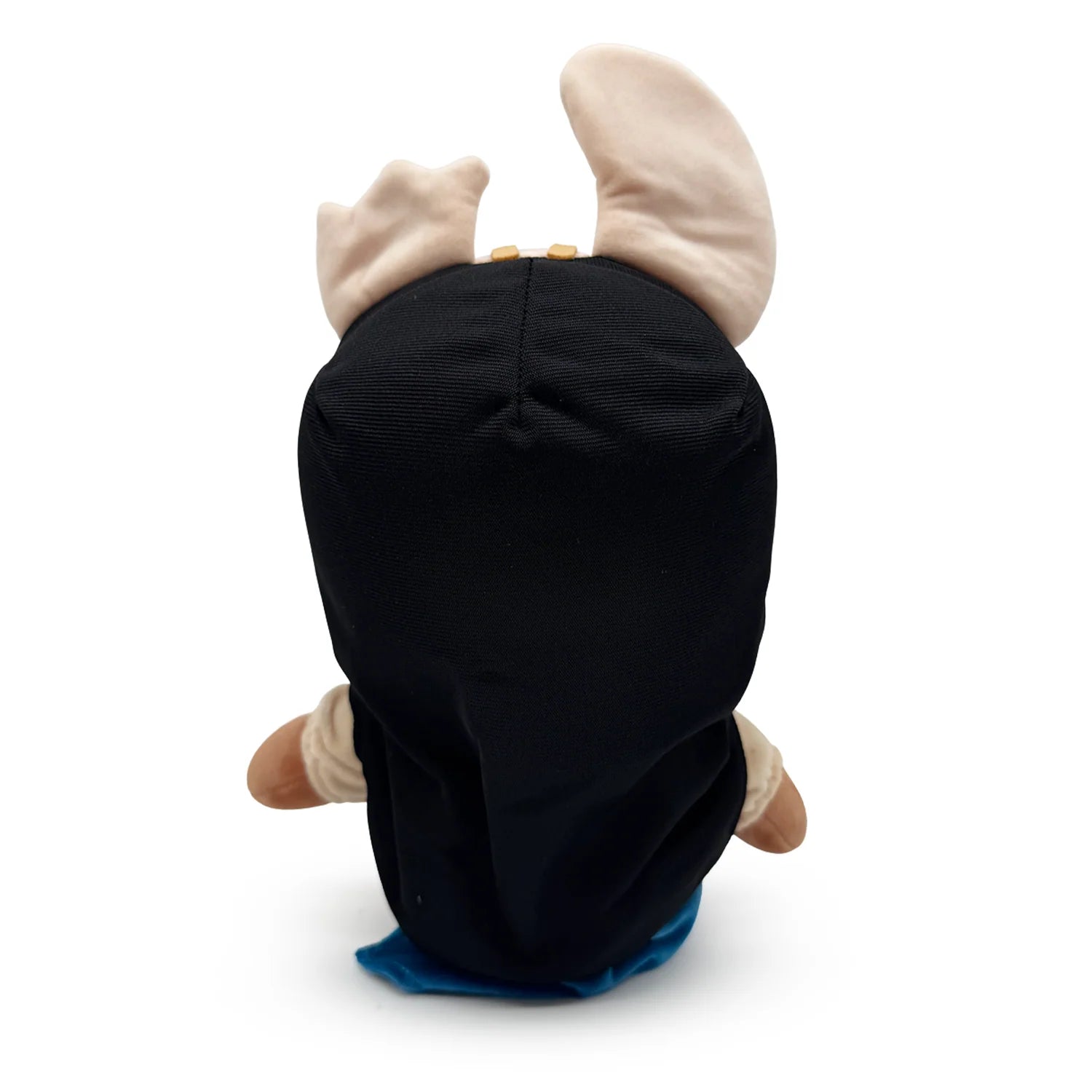 Sometimes you just need a fierce woman to get a job done! Huntress is back, and she's on the hunt... for cuddles! This brand new 9 inch tall plush has softened this deadly damsel into a new form, as she's seated with her bare feet kicked forward and wears a blue skirt that covers grey leggings. With a beige shirt that's accessorized with a brown waist belt and grey suspenders that match her scarf, her iconic mask rests on her face with one ear sticking up as the other is broken while dark hair cascades down her back. This plush is packed to the seams with 100% PP cotton and is made of the minky and tricot materials with accents felt, perfect for cuddling or hunting with!