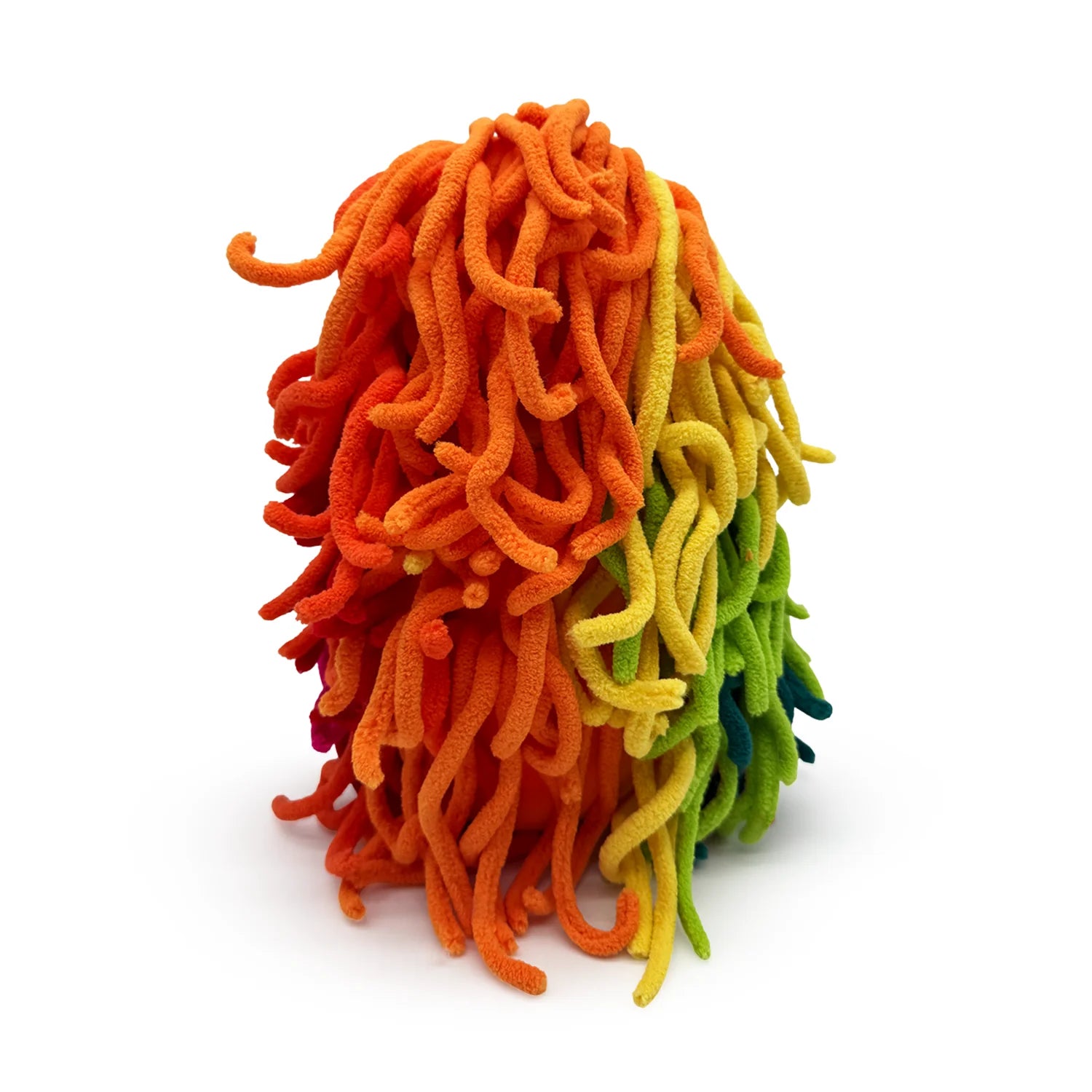 Yarnaby has arrived at Youtooz in search of new friends! Is that going to be you? Sitting at 9 inches tall with a pair of huge eyes shining from above a smiling mouth that has 3 white teeth protruding from it, their front arms hang forward as thick haunches keep them upright, and their orange body is covered in long rainbow fur. This plush is packed to the seams with 100% PP cotton and is made of the softest minky and chenille shag materials, perfect for cuddling and being the best pal around!
