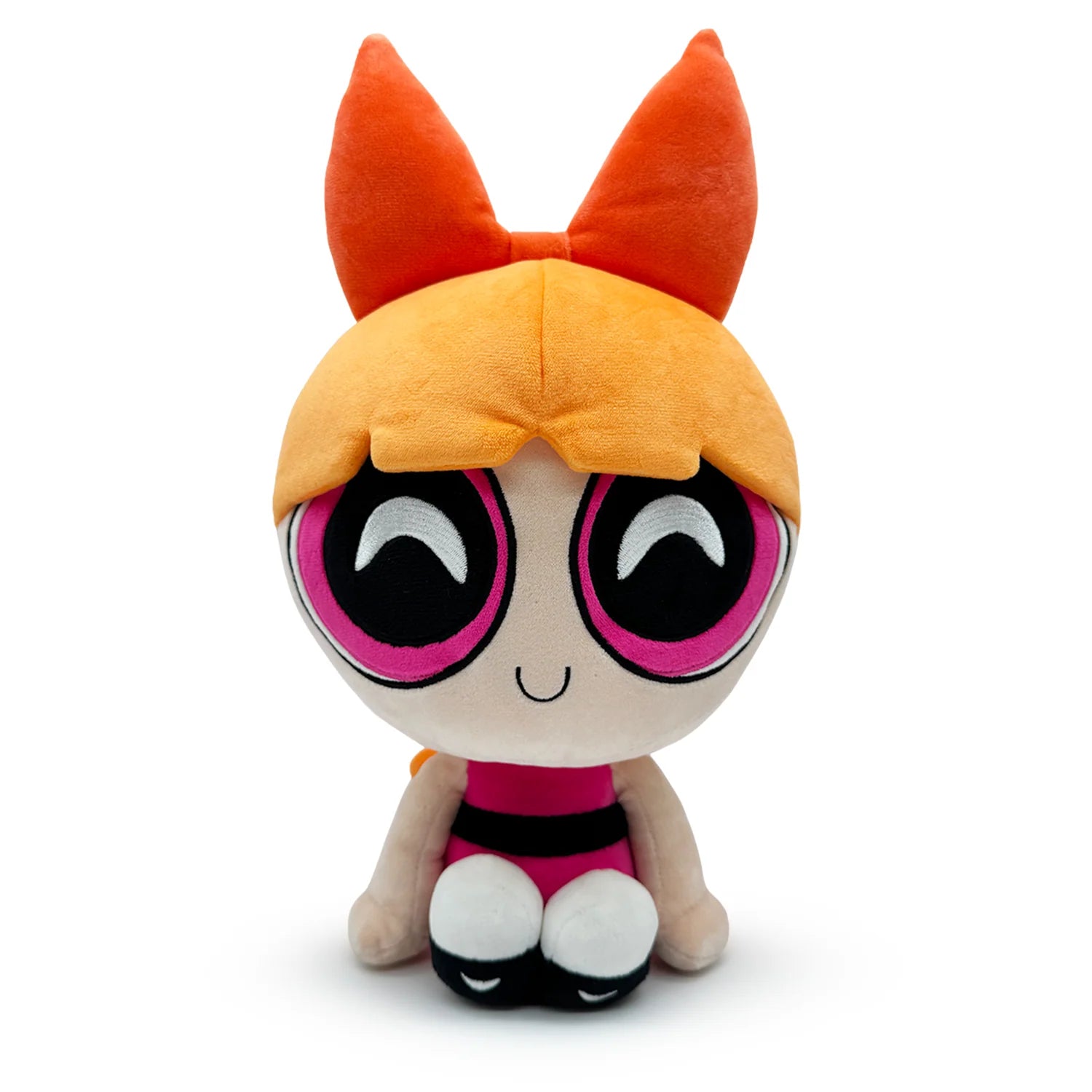 Youtooz is in trouble and the only ones we can count on are The Powerpuff Girls! Sitting at 9 inches tall, Blossom’s huge pink eyes beam out from underneath a short orange fringe as hair falls down her back in a ponytail that’s held in place with a heart-shaped clip that matches the large bow atop her head. With arms hanging loosely at either side as her knees are raised to the front, she wears a sleeveless pink shirt and skirt with a black band around the waist along with white socks and black shoes. This plush is packed to the seams with 100% PP cotton and is made of the softest minky materials, absolutely perfect for cuddling or fighting crime with!